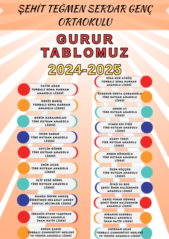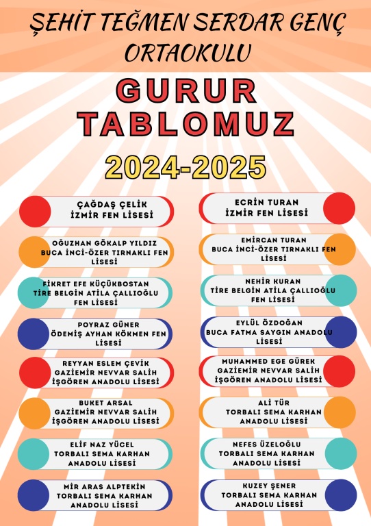 2024-2025 Eğitim Öğretim yılında merkezi yerleştirme ile ortaöğretim kurumlarına yerleşen öğrencilerimizi tebrik ediyor ve başarılarının devamını diliyoruz.